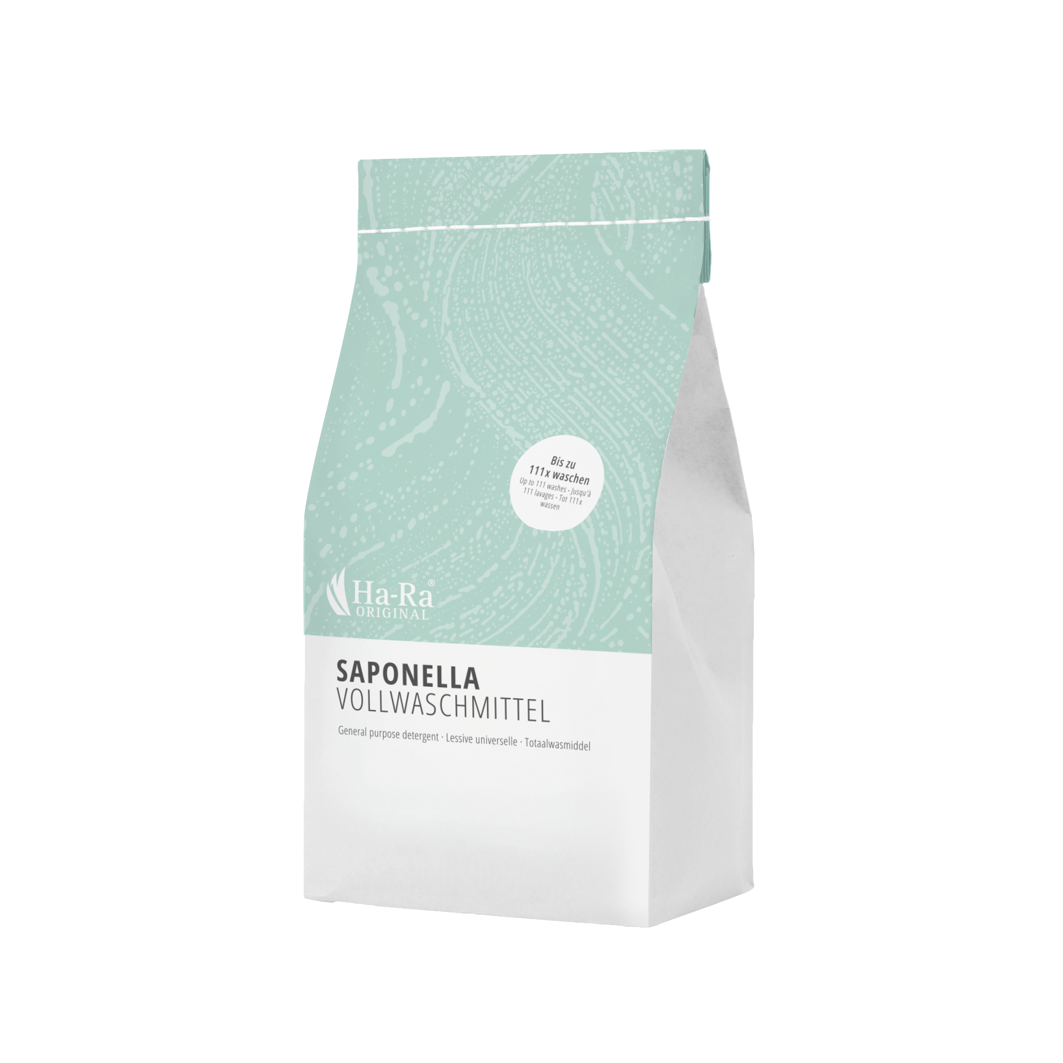 Pour le nettoyage de linge blanc en machine. Ajustée à l’idéal pour le nettoyage des fibres Ha-Ra. Ne convient pas à la laine et à la soie. CONSEIL : pour le linge de couleur, nous recommandons la lessive linge délicat Saponella de Ha-Ra.
